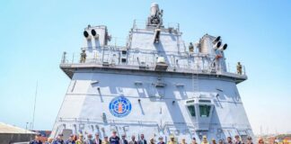 Somali yetkililer Türk Donanması’na ait savaş gemisi TCG Sancaktar’ı Mogadişu’da düzenlenen resmi törenle karşılayarak, Türkiye ile deniz güvenliği ve savunma alanındaki iş...