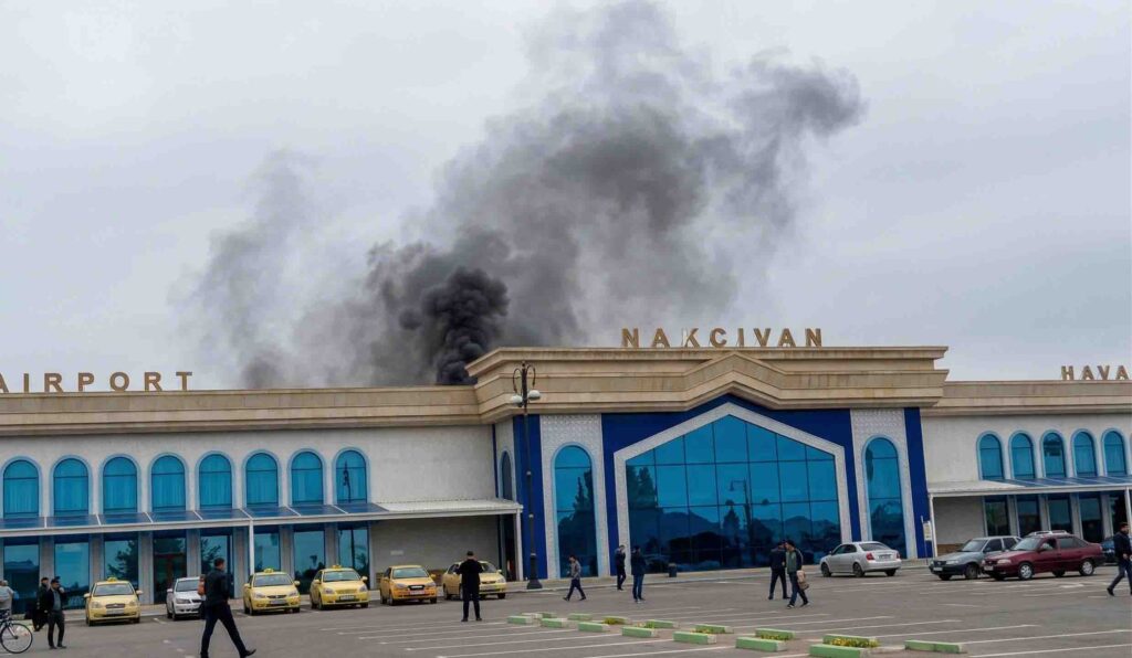 Yetkililere göre İHA’lardan biri Nahçıvan Havalimanı binasına çarptı.