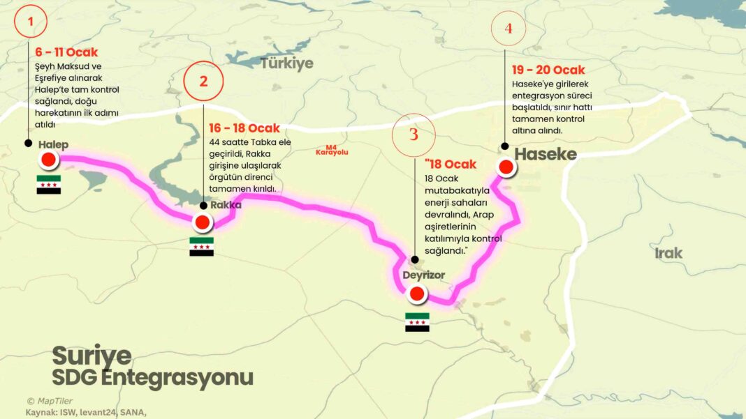 Sahadaki Son Durum: Diplomatik Kriz: SDG Komutanı Abdi ve Suriye Geçici Başkanı Shara arasındaki görüşmelerin başarısız olması operasyonu tetikledi. Askeri Harekat: Suriye güçleri, Kürt çoğunluklu Kobani ve Haseke bölgelerine doğru ilerliyor. DEAŞ Tehdidi: Ordunun hapishaneleri (Rakka/Haseke) devralma girişimi sırasında Şaddadi’den DEAŞ’liler kaçtı. Birlikler şimdi El Hol kampına yöneliyor.