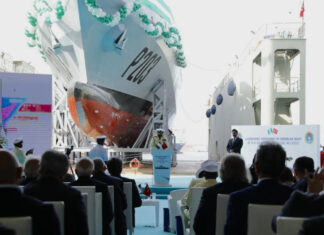 Dearsan Tersanesi, Nijerya Donanması için inşa ettiği ilk 76 metrelik Açık Deniz Karakol Gemisini (OPV 76) gerçekleştirilen törenle denize indirdi.
