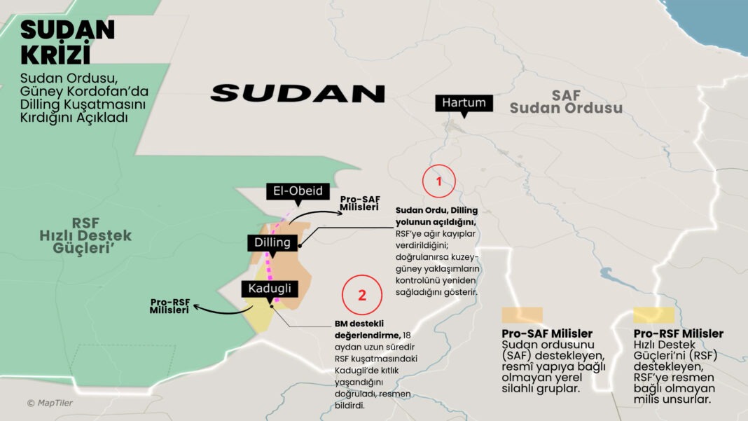 Dilling, Güney Kordofan’ın kuşatma altındaki başkenti Kadugli ile Kuzey Kordofan’ın merkezi El-Obeid arasında kritik bir geçiş noktası.