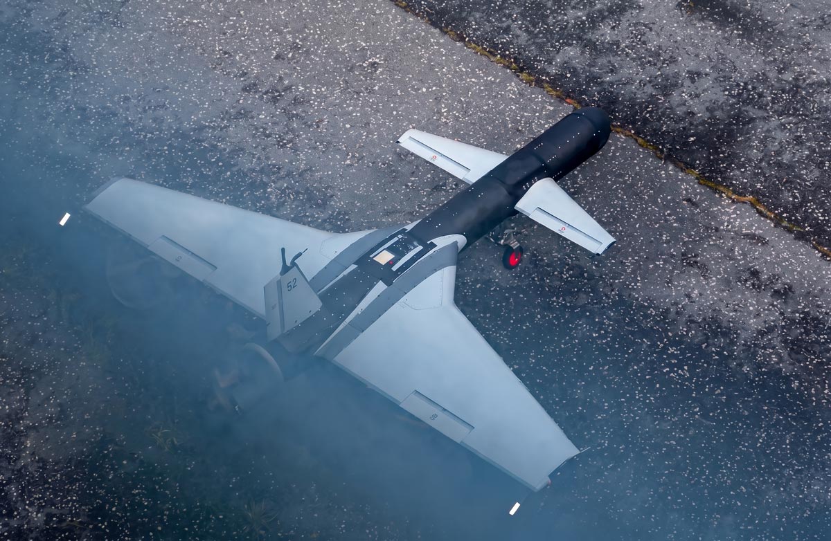 The munition is offered in two configurations, including a 40-kilogram dual-warhead variant designed for high explosive effect and a single-warhead version carrying 20 kilograms of explosives equipped with a radio frequency seeker for precise target acquisition. With a wingspan of four meters, the platform can also conduct reconnaissance and surveillance missions using electro-optical and infrared sensors.
